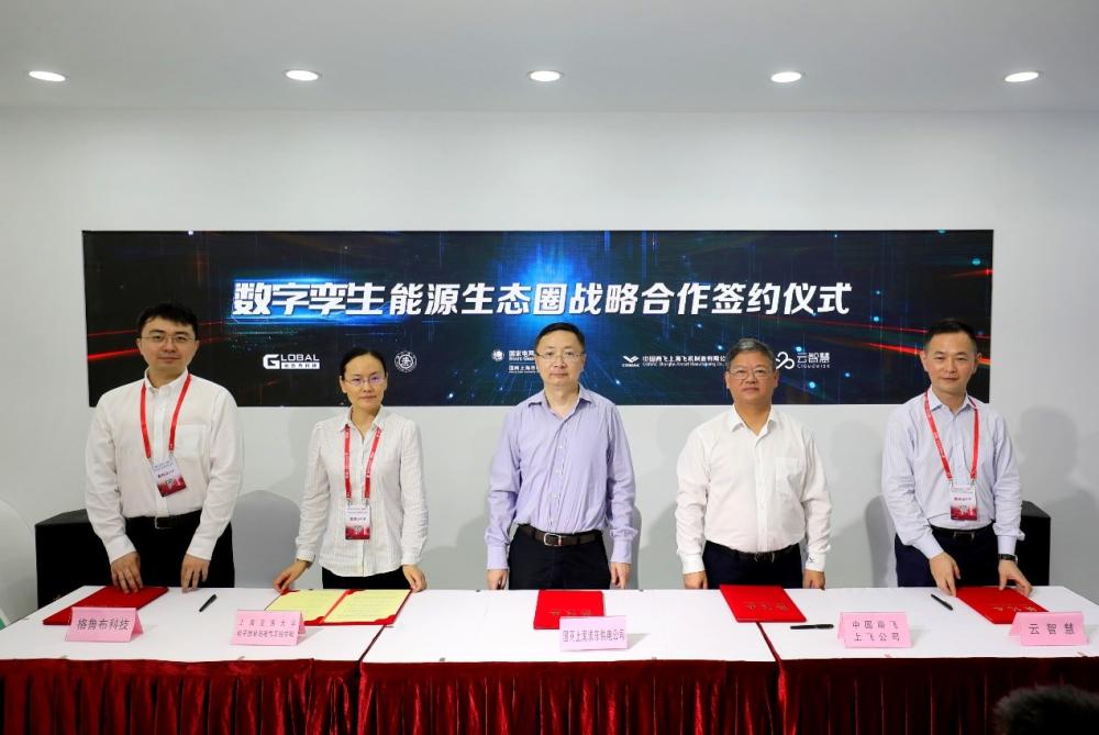 2020年9月15日,第22届中国国际工业博览会在国家会展中心隆重开幕,好色tv 作为唯一高校参与方,与国网上海市电力公司等5家企业在国家电网展厅现场共同签署“共生、共享、共治、共赢”数字孪生能源生态圈战略合作协议。好色tv 副院长刘胜利,国网上海市电力公司副总经理、浦东供电公司总经理潘博,中国商用飞机制造有限责任公司上海飞机制造有限公司副总经理童懿,云智慧(北京)科技有限公司总裁刘洪涛、上海格鲁布科技有限公司副总裁沈道义、电院师生代表共同出席了此次签约仪式。
