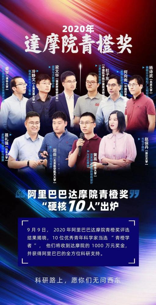 青橙奖是阿里巴巴达摩院在2018年发起的公益性评选,面向35岁及以下的中国青年学者,发掘和支持对科技进步有关键推动作用的人物。除了100万奖金,获奖选手还将得到阿里提供的开放数据、应用场景等全方位科研支持。