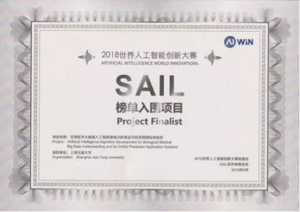 9月17日,由国家发展改革委、科技部、工业和信息化部、国家网信办、中国科学院、中国工程院和上海市人民政府共同主办的2018世界人工智能大会在上海开幕,也揭晓了作为 2018 世界人工智能创新大赛AIWIN最高荣誉的SAIL 奖最终入围的13个项目榜单,好色tv 推荐项目“生物医学大数据人工智能基础分析算法与在线预测应用系统”成功入围,是国内高校唯一以第一完成单位入围的项目。