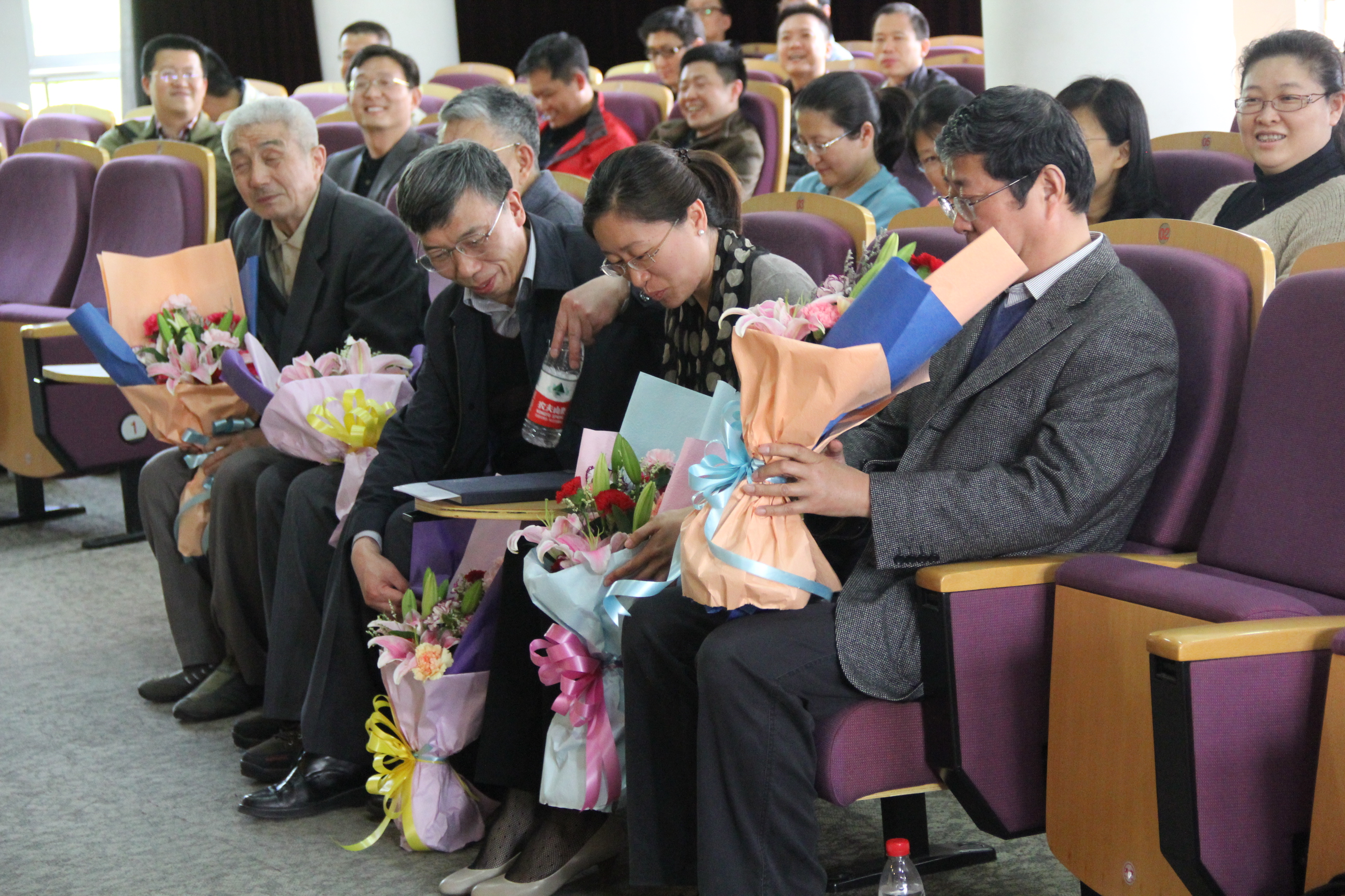 会议伊始,七名女生代表93届全体校友向到场的老师们献花致敬。随后,潘国礼老师对校友们的到来表达了欢迎并送上诚挚的祝福。他简要介绍了交大20年来的发展历程,并感谢了全体校友为母校带来的荣誉,还特别提到了其中一位同学对学校安居房所做的巨大贡献。接着,薛震民书记向校友们介绍了电子系的现状,尤其突出了团队化和年轻化的特色,分析了电子系与全国及世界知名高校对比的优劣。临近讲话结束时,他向校友们表示母校以永远以93届电子系校友为荣,校友们则深情地回应他们每个人也都以母校为荣,以电子系为荣,现场气氛达到一个高潮。而李建华副院长则以个人情感经历的角度切入话题,博得了校友们的阵阵笑声,之后话锋一转介绍自己和信息安全工程学院的状况,并提出了不少有深度的见解,还欢迎校友们与母校开展进一步合作。整个过程中,校友们专注地聆听着每一个词语,了解着母校一点一滴的变化,随着讲话的内容时而喜悦,时而沉思。