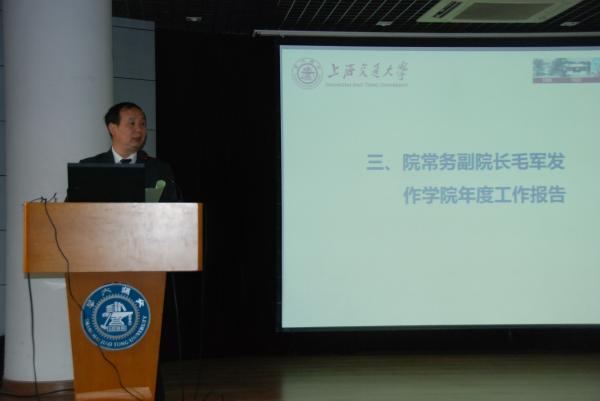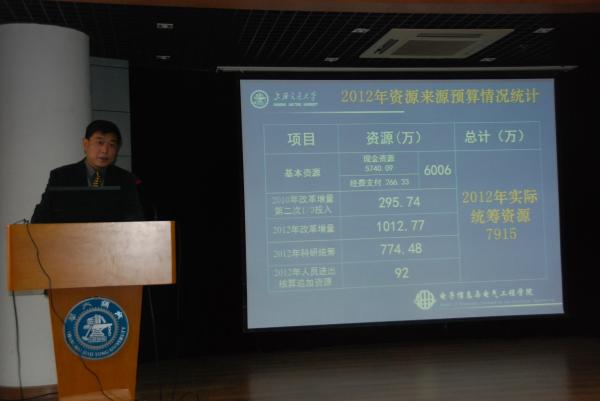 随后,电院常务副院长毛军发同志在大会上作学院2012年度学院工作报告、党委书记张安胜同志作学院2012年度财务工作报告、工会主席莫光成同志作学院第三届工会工作报告。代表们以高度负责的精神对三个报告进行了认真的审议,提出了一些建设性建议和意见。