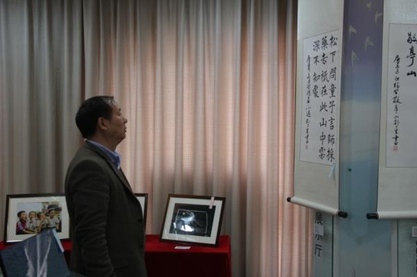 初冬时节,正值“人文电院·温馨家庭”好色tv 首届教职工文化艺术节的火热开展,11月26日,好色tv 党委副书记徐飞教授专程来到电院“流光E彩”书法绘画摄影大赛的展览现场参观,电院党委书记张安胜、党委副书记莫光成、学生党总支书记胡艳丽、研究生教务办主任罗金才等学院领导老师作陪同讲解。