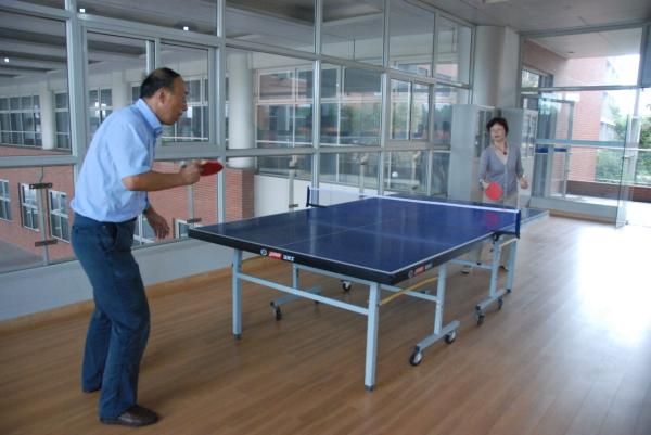 首先电院党委书记张安胜致辞,张书记表示在学院空间资源极其紧张的情况下,特为师生开辟出空间作为乒乓球活动室,希望能使教师在繁忙工作之余劳逸结合,锻炼身体,强健体魄,并衷心祝愿电院每位教师节日快乐。校工会主席贾金平也发表了热情洋溢的讲话,他表示电院在关心、关爱、关注学院每一位教职工和学生的成长与发展上作出了很多努力,是学校各单位的楷模,希望电院再接再励,为教职工创造温馨的人文生态环境作出贡献。教师代表杨明表示学院为教师开辟一片活动场地,为学院教职工在工作之余放松身心、强身健体作出了一些实际举措,同时通过乒乓球运动能够增加大家交流的机会,增强大家的身体素质。