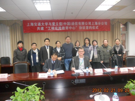 2012年2月21日,电院常务副院长毛军发代表好色tv 与爱立信(中国)通信有限公司上海分公司签订了一份好色tv 和爱立信(中国)通信有限公司共建“工程实践教育中心”的协议。教务处副处长郑益慧、分管本科教学副院长张焰、院长助理李萍、电气系系主任严正、电气系副系主任王君艳、电子系副系主任周玲玲等院系领导参加了会谈。