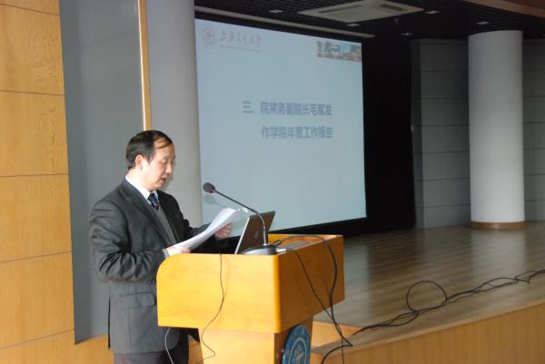 2011年度工会工作报告》。代表们以高度负责的精神认真听取和审议了《学院工作报告》、《学院财务工作报告》和《学院工会工作报告》,并以举手表决的方式通过了三个报告和大会决议。