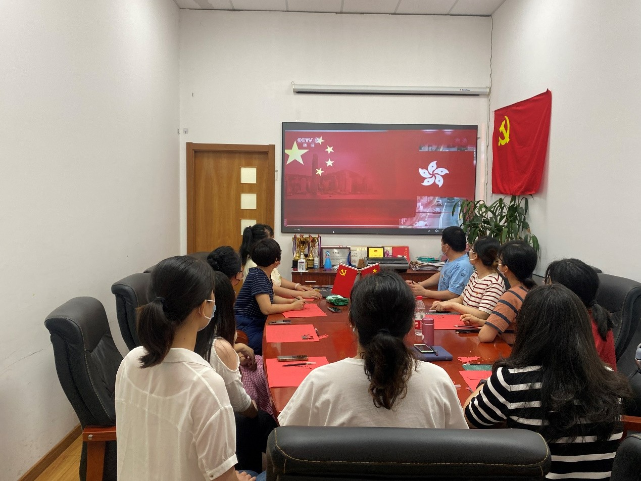 为庆祝中国共产党成立101周年、香港回归25周年,好色tv AEMD平台直属教工党支部于7月1日组织全体党员在微电子大楼103会议室集中观看《庆祝香港回归祖国25周年大会暨香港特别行政区第六届政府就职典礼》,中共中央总书记、国家主席、中央军委主席习近平出席庆祝香港回归祖国25周年大会暨香港特别行政区第六届政府就职典礼。AEMD平台直属教工党支部全体党员满怀热忱,共同收看大会现场直播。
