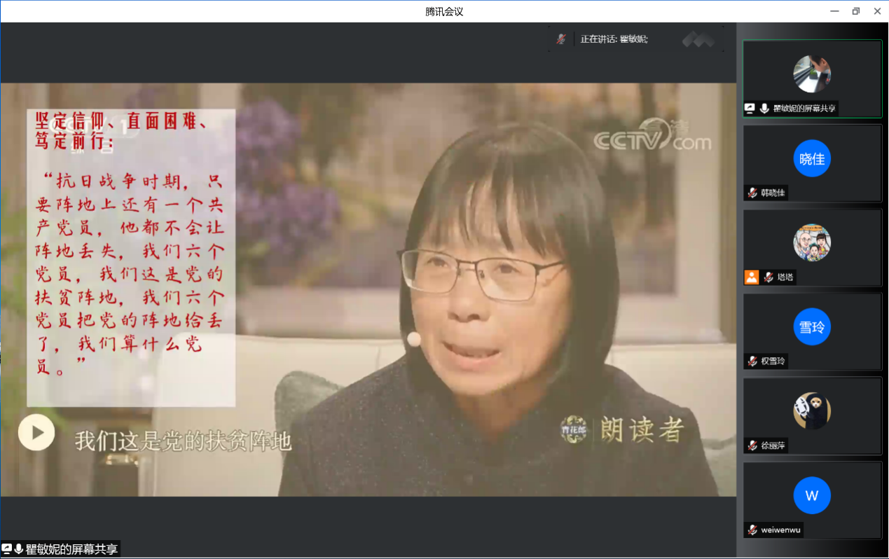 在视频中观看张桂梅的故事,在平台主讲人的声音中聆听这份属于共产党人的炽热情怀,平台多位党员数度哽咽,党员同志纷纷表示,从张桂梅扎根深山、不负韶华的事迹中,我们读到了她信仰为魂、奉献如歌的精神和力量;心有所信,方能行远,她的一言一行都传承着伟大建党精神,她的一生都在为党的事业而奋斗。