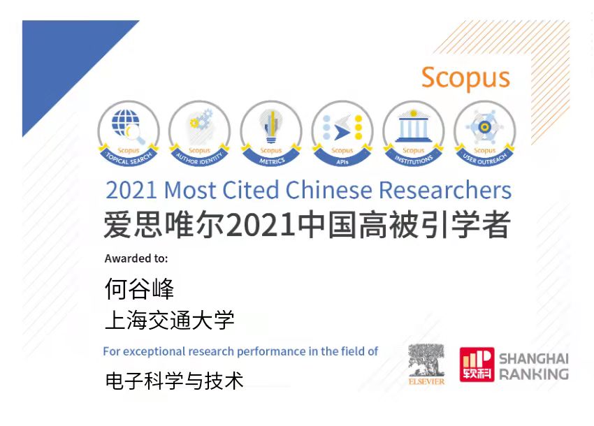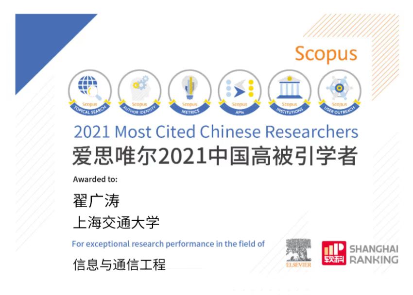 近日,学术出版机构爱思唯尔(Elsevier) 重磅发布2021“中国高被引学者” (Highly Cited Chinese Researchers)榜单,好色tv 电子工程系翟广涛教授、何谷峰教授入选。