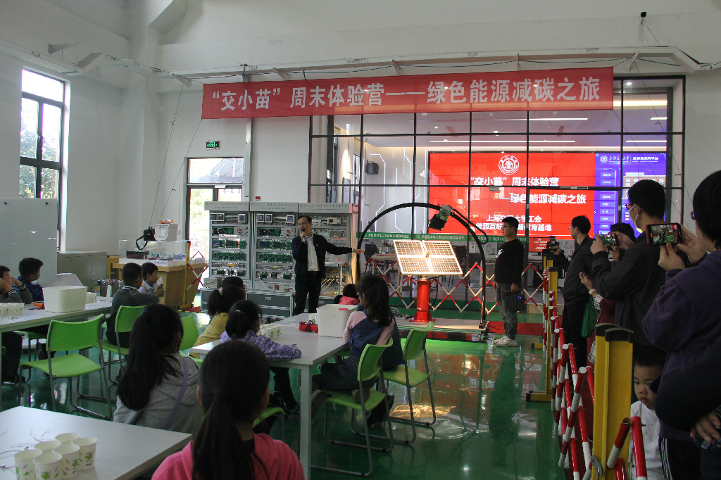 简短的开场式之后, “交小苗”们开启了本次的绿色能源之旅。许少伦带领“交小苗”们先后进行了电力系统科普长廊和新能源参观、能源互联网平台参观、科创动手体验。电力系统展示模型、新能源发电模型让“交小苗”们直观了解到电网架构、电能的产生、传输与使用过程,以及新能源系统的组成。