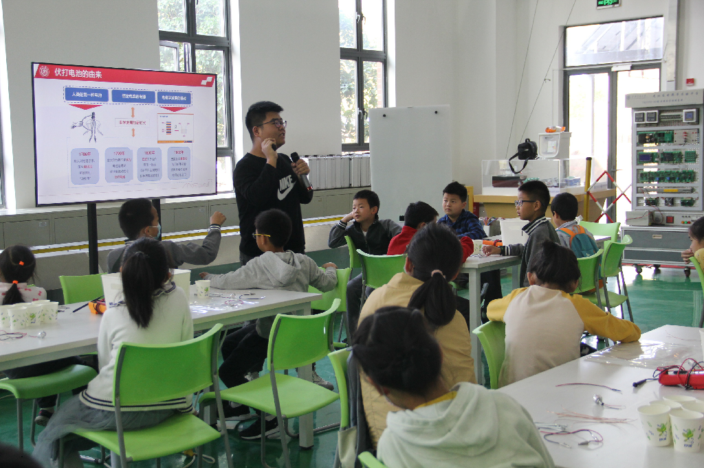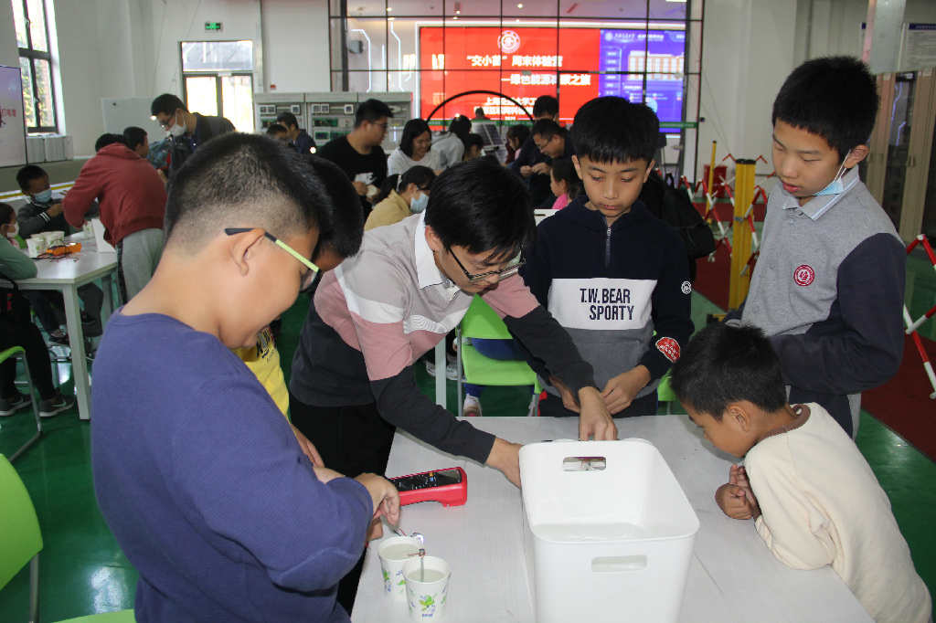 “交小苗”们随后参观了能源互联网平台及其“数据大脑”—能源互联网控制中心,进一步了解了校园智慧能源管理的理念和能源监测系统的主要功能。在能源互联网平台展示后,“交小苗”们又进行了“金属蕴能——伏打电堆”动手实验。党员志愿者们首先对实验原理,操作步骤进行了讲解,并将关键部分进行展示,随后由小朋友们自己动手完成实验。“交小苗”们热情高涨,全身心地投入,虽然实验过程中会出现问题,但孩子们积极思考,认真排错,最后都成功完成实验。家长们表示本次实验提高了“交小苗”们分析问题、解决问题的能力,令他们受益匪浅。
