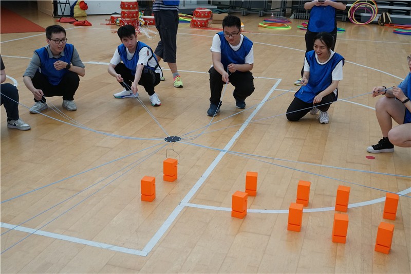 比赛共设有一鼓作气、合力建塔、环环相扣和陆地冰壶等四项计分项目,以及一对一拔河比赛。体育馆外34度的高温无法阻挡参赛团队的热情,虽然大家的脸颊上挂了不少汗珠,但课题组齐心协力迎接挑战的过程,相信对每一位老师同学而言都是一次难忘的体验。