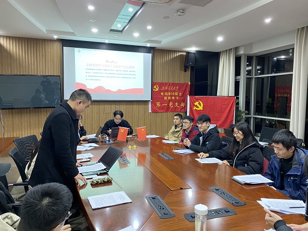 会议上,全体党员同志通过深入阅读《中国共产党第十九届中央委员会第五次全体会议公报》纸质学习资料、共同观看中共中央新闻发布会视频等方式全面、系统、深入学习了党的十九届五中全会精神。随后,党员们互相讨论并积极分享了自己学习全会精神的心得体会。熊国杰同志分享了关于创新方面的感想,“应当坚持创新在我国现代化建设全局中的核心地位,把科技自立自强作为国家发展的战略支撑。要强化国家战略科技力量,提升企业技术创新能力,激发人才创新活力,完善科技创新体制机制。” 郑树云同志针对餐饮浪费的问题谈到,“古话常说:民以食为天,食以俭养德。中华民族自古以来就有敬天惜粮的传统,勤俭节约也是我们党一以贯之的优良作风。只有人人自觉践行,节俭才能蔚然成风。” 张武凯同志介绍了自己关于扶贫方向的思考,“2020年是全面建成小康社会的关键年,脱贫攻坚战也处于关键时期。扶贫工作不是一次性的战斗,也不是局部的战役,而是一场涉及几千万贫困人口的战争,要把‘扶贫’抓在手上、记在心上、扛在肩上,为实现如期脱贫,决胜攻坚战提供应有的战斗力。”李林祥同志讲述了自己关于生态环保相关的体会:“既要绿水青山,也要金山银山,生态文明是人类文明发展的新阶段,是继原始文明、农业文明、工业文明之后崭新的文明形态。”