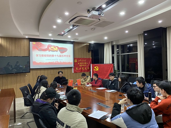 中国共产党第十九届中央委员会第五次全体会议于2020年10月26日至29日在北京举行。为深入学习贯彻党的十九届五中全会精神,进一步动员和激励广大党员同志思想和行动统一到党中央重大决策部署上,12月14日晚,电院B20硕士微纳电子第一党支部开展了“学习贯彻党的十九届五中全会精神”主题党日活动。支部全体党员出席会议。活动由党支部书记张清泽主持。