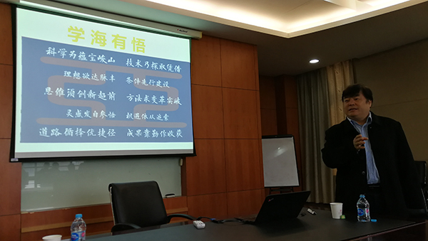 11月28日,崔大祥主讲最后一场报告会,以“学会成长”为主题分享了自己求学、工作的经历与体会。崔大祥建议同学们需要有对未来规划的初步想法,也与同学们分享了自己当年博士求学路上的经验。崔大祥谈到博士第一年需要充分认识自己,了解现况;而到了博士第二年需要逐步接触项目,培养解决问题的能力,充分探索、思考。当谈到专业跨界的问题时,崔大祥用切身经历告诉博士同学们不要去畏惧新领域,知识是融会贯通的,当遇到知识的不足时,自己主动去“充电”,最重要的是要有一颗勇于探索的心。