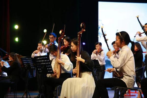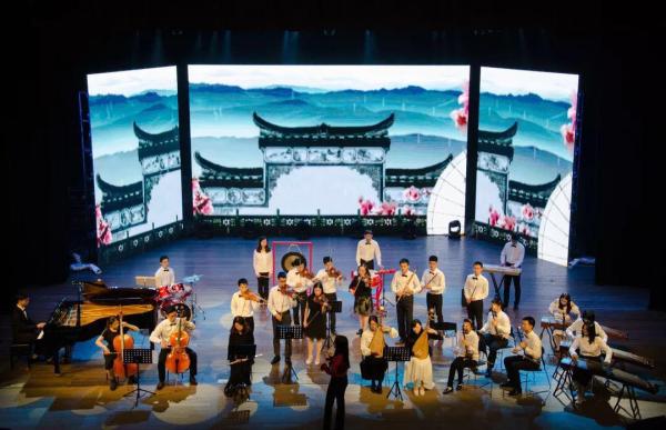 “饮水思源,海纳百川。”整场晚会在由常春藤乐团带来的《大江》合奏中拉开序幕。其中既有气势恢宏的乐章象征着百年道路上电院人一往无前的进取姿态,又不乏温婉柔和的声部衬托着学生校友们心系学院、心系国家的深切感情。