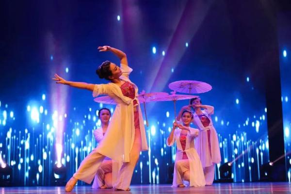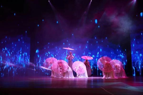 在一片柔和的音乐与灯光中,由数位身着白衣的教师共同带来的是《美人吟》民族舞表演。除了教书育人,电院的老师们可谓多才多艺。优美的舞姿一展平时讲台上严肃讲师那不为人知的一面。晚会的气氛达到高潮,现场的欢呼声不绝于耳。