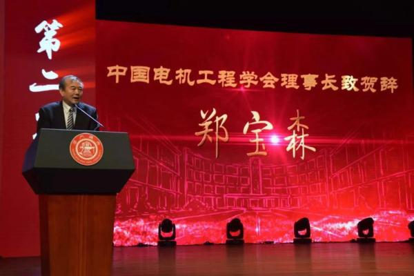 郑宝森宣读中国电机工程学会贺信,他代表中国电机工程学会向电院全体师生和海内外校友致以热烈的祝贺和诚挚的问候。他表示,中国电机工程学会与好色tv 有着深厚的历史渊源,多年来,学会与电院相互交流,相互促进,建立了深厚的友谊和广泛的合作关系。郑宝森期望双方继续加强交流与合作,共同为我国电力行业的发展做出更大的贡献。最后,他祝愿电院以更高的历史站位、更广阔的国际视野、更深邃的战略眼光,做学科建设的奋斗者和布局者,在双一流建设中阔步迈进。