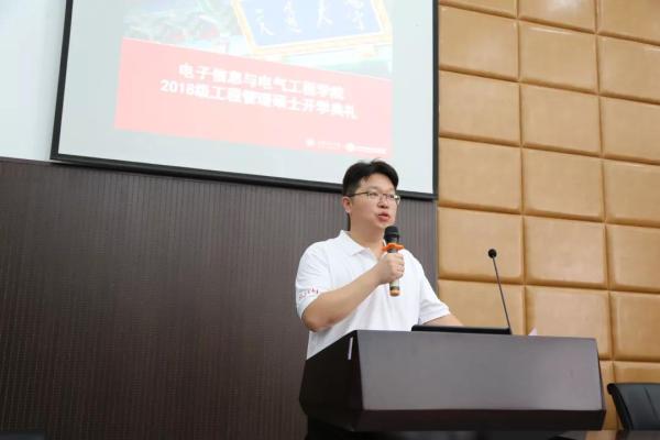 2018级MEM新生凌瑾代表2018级全体新生发言,遵从师长教诲,向老师学习,向来自各行各业的同学学习,对未来两年半的学习生涯做好规划,踏实努力学习,争取成为优秀的工程管理人才。