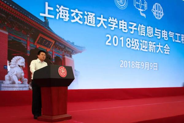 关新平首先为迎新大会致辞,他代表电院向两千余名本硕博新同学表示祝贺和欢迎。他指出2018年对在座的同学和电院都有特别的意义,同学们踏入交大校门正式开启人生新航程,而电院也将迎来110周年华诞。关新平回首了电院走过的百十载壮阔岁月,同时与同学们分享三条人生感悟:保持勤奋踏实作风,保持对新知识的渴望;提升人生境界,砥砺一等品行;提高价值追求,与祖国需要同向同行。他希望同学们都能够牢记百十电院的荣光,努力成为国家栋梁之才。