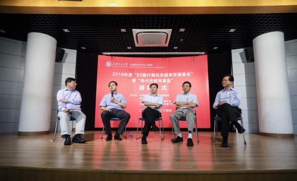 颁奖结束后,杨元庆、陆益民、凌晓峰和钱蓬四位学长上台,开展学长论坛,与同学们进行交流和分享,论坛由孙瑞铭学长主持。对于同学们关心的专业与就业的问题,陆益民学长表示,多年来他无论身处何种岗位和行业,都始终受益于交大培养出的专业知识、治学理念和严谨作风。同学们要摒除浮躁,认真学习,为将来打好基础。对于时下火热的人工智能,学长们也跟同学们分享了自己的看法,指出扎实地做好科学性的研究对人工智能的长远发展有益。