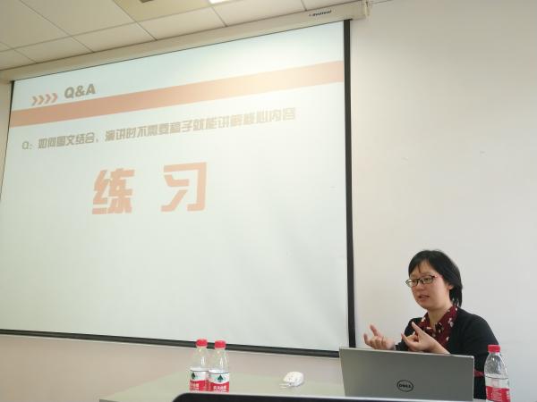 首先,沈小丹对PPT专项技能进行授课。沈小丹分别从PPT的审美要求、排版方法及使用技巧等方面为大家做了详细讲解,并在最后提问环节与大家互动交流,解决了大家提出的问题。