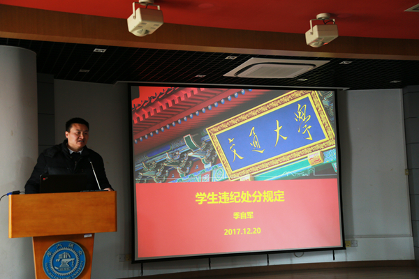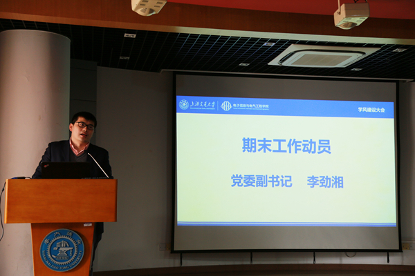 12月20日中午,电院在3-100报告厅召开2017年秋季学期学风建设大会。院党委书记苏跃增、党委副书记李劲湘、本科生教务办主任高怡祯、学生综合事务办主任季自军,全体思政教师、本科生班主任、研究生一年级班主任参加会议。会议由曾维娜主持。