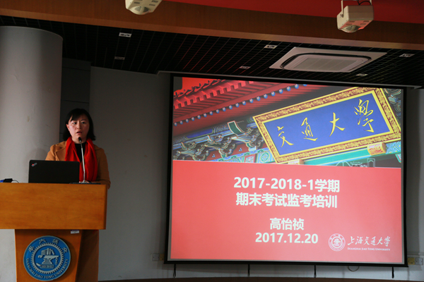 高怡祯进行监考培训,强调监考老师一定要提前15分钟到达考场,在正式开考之前完成“考场规则宣布”、“座位安排”、“考场清理”、“试卷发放”等工作,开考后仔细核查考生证件,考试过程中认真监考,不做与监考无关的事情。她提到,监考并不是一项难度很高的工作,只要监考老师有高度的责任心,监考工作就一定会顺利地完成。