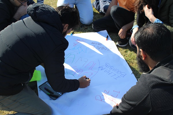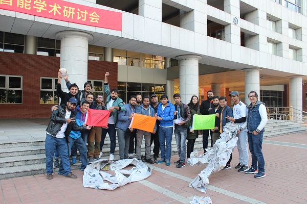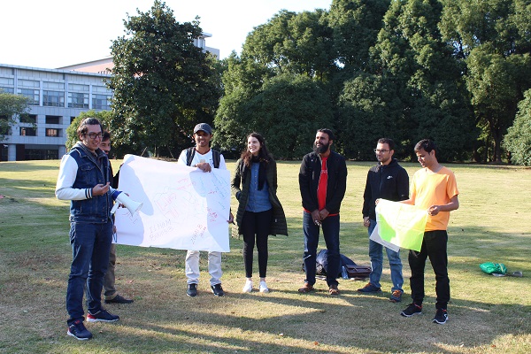 本次体验式培训在培训师的暖场活动中开始,各国留学生通过自我介绍,才艺表演相互结识了对方,并分别组建了三支队伍。各支队伍在相互沟通交流之后确定了队名,logo,口号,队旗以及吉祥物。整个过程其乐融融,气氛欢乐。
