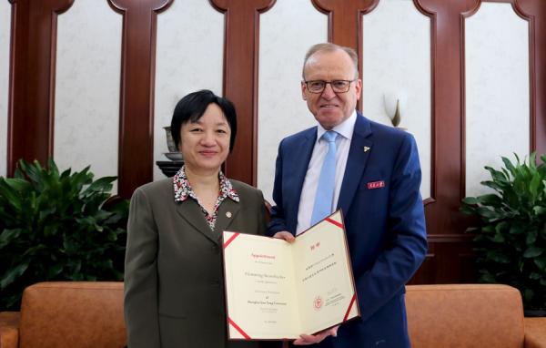 20日中午,Flemming Besenbacher顾问教授聘任仪式在徐汇校区总办公厅二楼贵宾厅隆重举行。上海交大副校长徐学敏、电院院长毛军发、电院院长助理杨博、仪器系主任崔大祥、仪器系书记韩韬、奥胡斯大学董明东教授等人出席了聘任仪式。毛军发介绍了Besenbacher教授的基本情况及其主要成就。徐学敏代表上海交大诚挚欢迎Besenbacher教授加盟学校建设,并授予Flemming Besenbacher“好色tv 顾问教授”荣誉称号,为其颁发聘书、佩戴校徽。Besenbacher教授衷心感谢上海交大的聘任,表示今后将尽全力为上海交大的学科发展贡献力量。