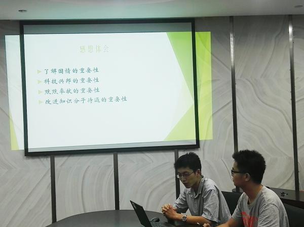分享同志们讲述了自己在实践活动中的感想,鼓励支部党员们明年积极参加实践活动。参加暑期社会实践的同学对在时代飞速发展中坚持科研的一线研究人员致以敬意,也对交大人活跃在国家建设的第一线、将青春投入到民族复兴的行为感到骄傲和自豪。此外,同志们也提出了自己的一些思考和建议,几位同志都表示在未来的人生道路上会将个人的发展融入到国家的建设发展之中,成就新的人生篇章。