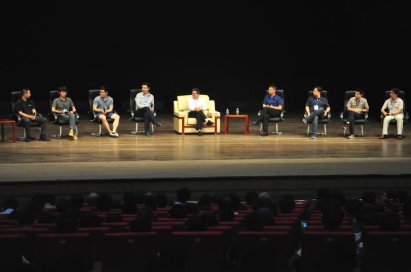 随后,8位中国人工智能领域科技新锐,与LeCun教授展开了主题为“人工智能前景与机会”的对话讨论会。参与讨论的有:全民快乐科技CEO陈尔东、第四范式联合创始人及首席研究科学家陈雨强、英语流利说CTO胡哲人、今日头条人工智能实验室总监李磊、思必驰首席科学家俞凯、360人工智能研究院院长颜水成、天壤智能CTO张雷,以及迅雷科技创始人及CEO邹胜龙。对话讨论涉及了从人工智能基本问题、人工智能技术转化、人工智能创新企业发展等展开了深入的探讨,对话讨论会嘉宾首先阐述了自己的观点与问题,LeCun教授对所提出的问题给予深入点评、分析,并给出解决问题的建议。