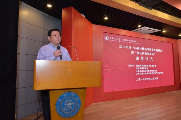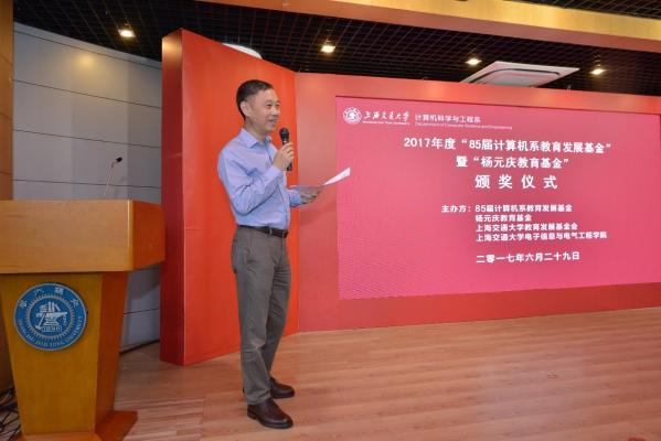 计算机系系主任过敏意教授作为“85届计算机系教育发展基金”暨“杨元庆教育基金”理事会理事,汇报了2017年度奖励申报和评审的情况。评审委员会根据奖项的设置,采取不同的指标来进行审查和评选,最终评选出1个优秀青年教师奖、3个优秀博士生奖、3个优秀硕士生奖,4个优秀本科生卓越奖学金奖,以及4个优秀本科生励志奖学金奖。
