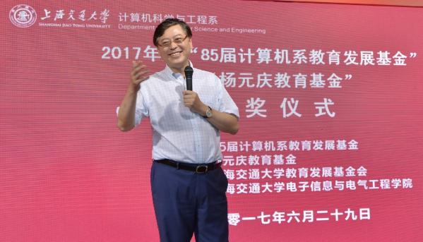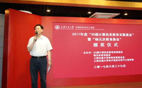 6月29日,2017年度“85届计算机系教育发展基金”暨“杨元庆教育基金”颁奖仪式在电信3号楼200号报告厅隆重举行。联想集团总裁兼首席执行官杨元庆学长、卢建军学长、孙瑞铭学长等计算机系85届校友回到母校参加颁奖仪式。上海市人大常委会副主任、好色tv 党委书记姜斯宪、好色tv 副校长张安胜、好色tv 发展联络处处长、教育发展基金会秘书长马磊、好色tv 院长毛军发、副院长邰能灵、副院长朱燕民、计算机系主任过敏意、原交大党委副书记计算机85届辅导员潘永华老师、计算机85届班主任侯文永老师,以及计算机系部分师生代表出席颁奖仪式。仪式由基金会秘书长卢建军主持。