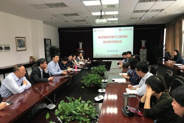 4月19日下午,好色tv 机关第一党支部和第二党支部在电院3-208会议室开展专题党组织生活会。院机关全体党员在副校长张安胜以及电院党委书记苏跃增的带领下,认真学习和讨论了校党委书记姜斯宪有关“立德树人谋发展,扎根中国创一流”的报告。出席会议的还有电院党委副书记杨一帆、李劲湘,电院原党委副书记莫光成,及其他党组织成员。
