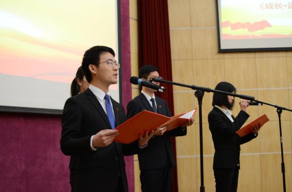 第一篇章中,杨舒婷等4位党员同学代表进行了以“成长.远航”为主题的诗朗诵,讲述了他们在交大的学习、生活的点滴回忆,表达了对未来的期望与信心。