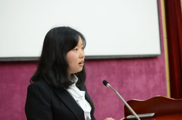 毕业生党员代表、学生党员标兵王钰楠代表毕业生发表了讲话,她分享了自己作为一名党员在平时的生活中始终以党员的标准要求自己,同时身边的党员同学也带给了她无数的温暖与感动。她表示很荣幸作为党员团队中的一员。时刻提醒自己的,“我是一名党员”这一句简单的话,却包含着我们的坚持和勇气。