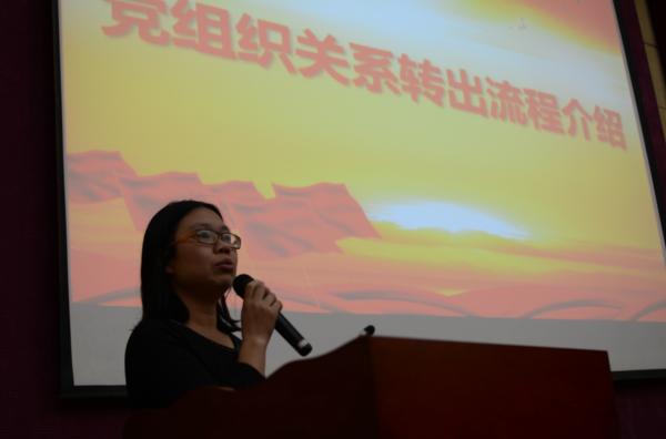 电院党建指导教师梁玉杰向大家介绍办理党组织关系转出的相关事宜。