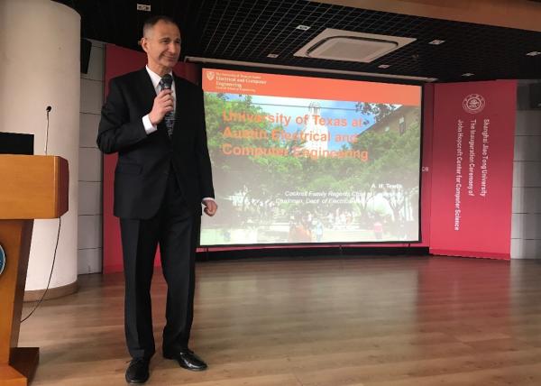 此行对方将与电院和机动学院联合讨论开展3+1+1联合培养学生的合作计划,力求能够与上海交大的工科强院携手培养出更多具有国际化视野的工程师人才。Tewfik教授代表电气与计算机工程系面向电院本科生进行了留学宣讲,介绍了UT Austin ECE的相关情况以及优势学科,并专门讲解了3+1+1项目的培养模式。