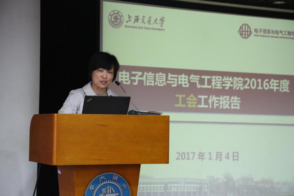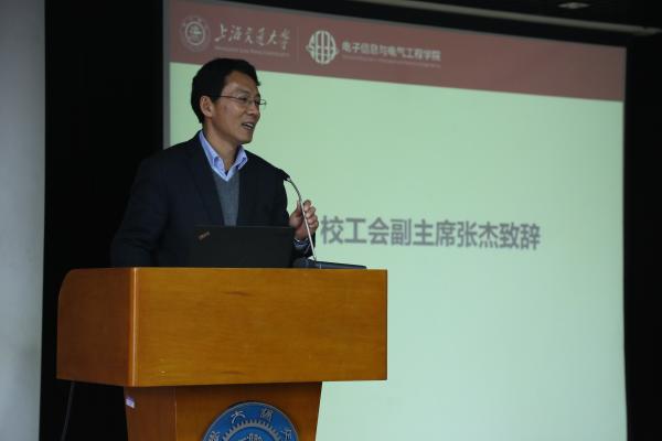 张杰代表学校工会致辞。他指出,过去一年,电院在校运会、教职工文化艺术节等大型活动上积极参与,并取得骄人成绩。同时,学院多名教职工在游泳协会、羽毛球协会等担任要职,做出贡献。他还提到,电院工会积极建设“民主之家”、“学习之家”、“温暖之家”、“快乐之家”、“和谐之家”,在民主管理、教工权益维护、校园文化建设方面的工作科学规范,是学校工会工作的标杆。他希望电院在新的一年能保持优良传统,不断开拓创新,取得更大的成绩。