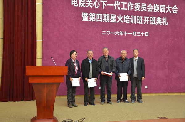 接下来,蒋立峰和杨一帆向新一届电院关工委委员颁发了聘书。
