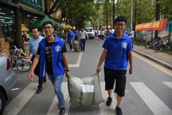 中午十二点,越来越多的新生完成了报到,从新体育馆D口涌出。三轮车组的志愿者们热心地向拖着行李的新生们伸出援手,不辞辛劳,奔走于新体和宿舍园区之间,用自己辛勤的付出换来“小鲜肉”们的轻松便捷,他们脸上的汗水就是志愿精神最真切的写照!