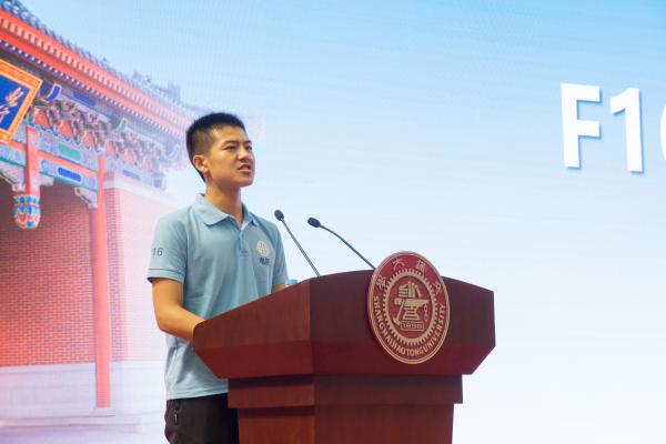 软件学院博士研究生、挑战杯特等奖获得者利文浩作为老生代表发言。他表示,大学是一个全新的平台,为每个人提供了更多自由发展的机会。他建议同学们从被动学习转为主动探究,勇于担当,敢于尝试。