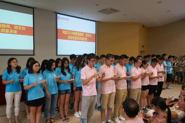会议最后,2016级全体思政老师和班主任们向新生家长庄严承诺“把爱心献给学生,把放心送给家长,把自信留给自己,为学生健康成长奉献全部”,并表示这句誓言将贯穿他们工作的始终,真正让学生顺利,让家长放心。