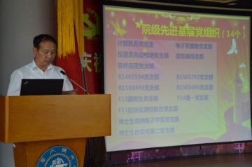 7月1日下午,值此建党95周年之际,电院在3-200号报告厅召开庆祝中国共产党成立95周年暨表彰先进大会。校党委常务副书记郭新立出席大会,校党委常委、组织部长顾锋,电院院长毛军发,学院党委书记苏跃增等学院领导及近百名党组织和党员代表参加。