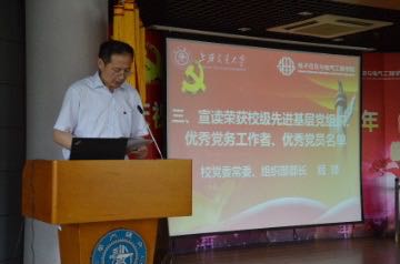 郭新立开场致辞。他表示,今天是建党95周年的日子,锐意进取的电院人克服了开展基层的党建活动的复杂性和艰巨性,取得了巨大的成果,值得鼓励与肯定。同时他结合今年刘云山同志在好色tv 的访问谈话,提出“学为基础,做是关键,继续推进‘两学一做’的深入开展”、“深化改革,开拓创新,扎实有效的开展基层党建工作”、“发扬先进,传承品格,助推交大、电院一流建设”的三大要求与建议,鼓励电院人更上一层楼。