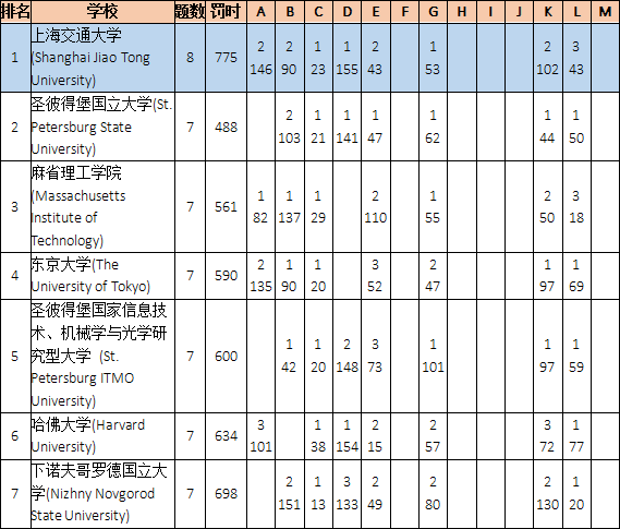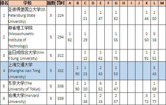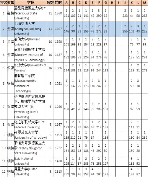 最终,圣彼得堡国立大学的罚时是1560,交大的罚时是1567,以7分之差屈居亚军。