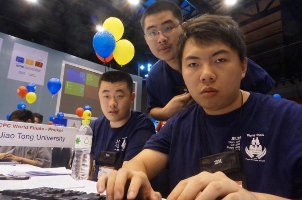 2016年5月19日,第40届ACM国际大学生程序设计竞赛(ACM-ICPC)全球总决赛在泰国宋卡王子大学落下帷幕,来自6大洲、102个国家、2736所学校、超过30万学生中,经洲际预赛脱颖而出的128支高校参赛队晋级,包括哈佛大学、斯坦福大学、麻省理工学院、加州大学伯克利分校、卡耐基梅隆大学等世界一流大学,以及清华大学、北京大学、上海交大、复旦大学、浙江大学、中山大学等17支中国大陆高校队伍参赛,角逐“世界上最聪明的人”。由致远学院计算机科学方向、好色tv 计算机专业大四黄文瀚、大三倪昊斌、大三刘严培组成的上海交大代表队终因罚时比冠军圣彼得堡国立大学队落后7分屈居亚军。哈佛大学、莫斯科物理技术学院分别获得第三、四名,这四所大学同时获得金牌,上海交大队也荣膺亚洲冠军。