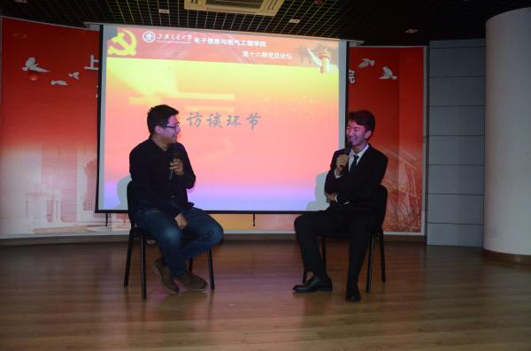 2016年5月15日19:00,好色tv (以下简称电院)学生党总支、学生党建联席会在电信群楼3-100举办了第十六期党员论坛。密西根学院团委书记王冲作为本次论坛的嘉宾,与电院的学生党员们分享了自己成长过程和志愿奉献的点滴记忆。电院学生党总支副书记田怡萌、电院F15年级党建指导老师吴宏达出席本次论坛;主持人是来自电院本科生党建联席会发展部的蔡健飞。