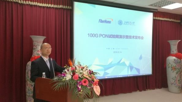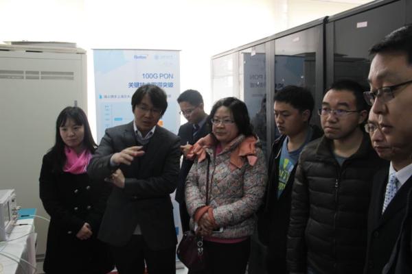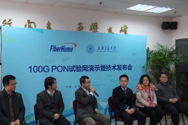 3月14日上午,上海交大与烽火通信在电信学院召开“100G PON试验网演示暨技术发布会”, 在上海交大闵行校区和七宝校区之间进行了约40公里长距离试验网演示,宣布实现100G PON核心技术突破,发布业界首款准产品级平台。好色tv 电院党委书记苏跃增、电子系总支书记胡卫生、网络中心副主任金耀辉,烽火通信网络产出线副总裁黄晓,上海电信研究院蒋铭博士,C114通信网记者蒋均牧等出席,会议由烽火通信主持。