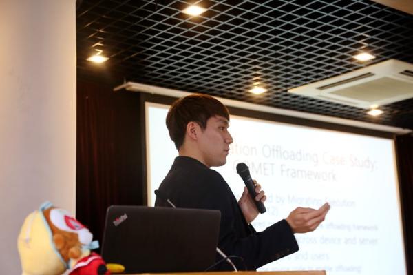 成均馆大学软件学院院长CHUNG TAI MYOUNG 电院师生的热情接待表示感谢,并提及希望借此学术交流机会让两校学生互相学习,拓宽视野。随后,两校学生代表就各自研究领域的成果性内容作深入的汇报交流,两校学生踊跃提问互动,碰撞出智慧的火花。